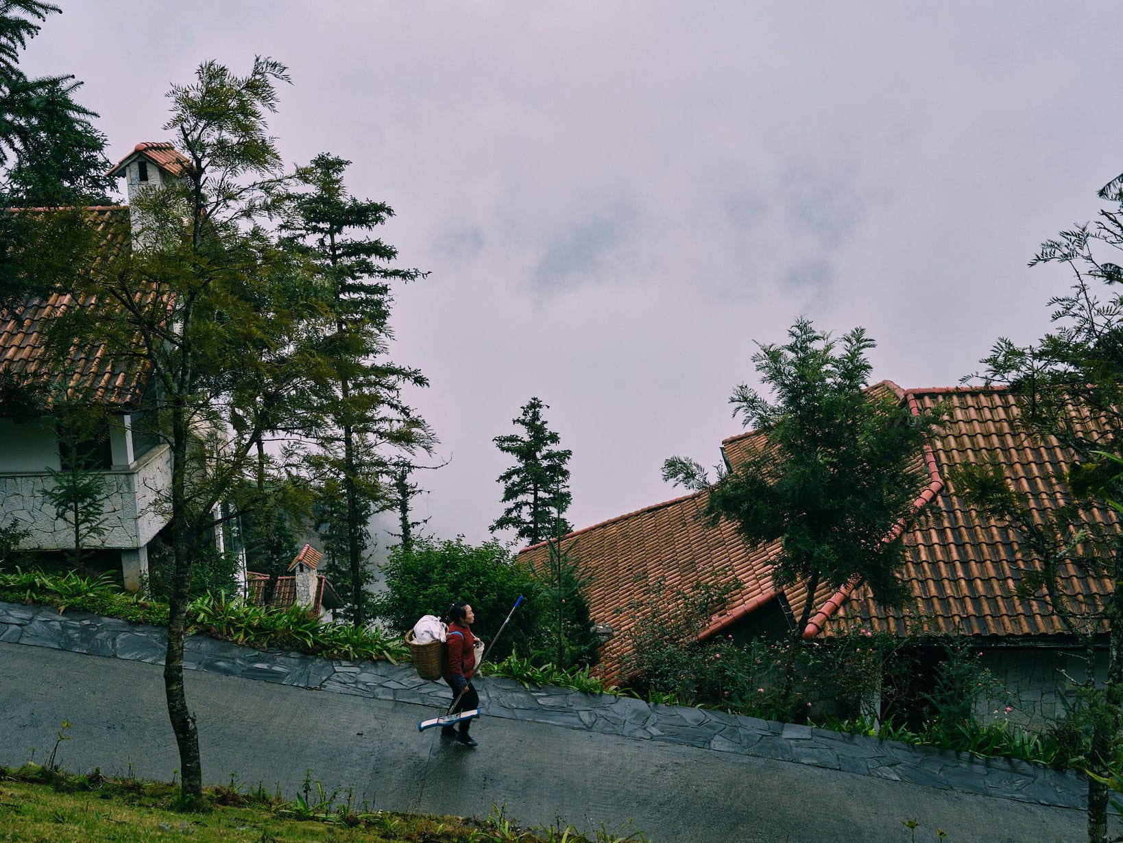 Ở khu nghỉ dưỡng Ville De Mont, việc buồng phòng vất vả hơn nhiều lần so với các khách sạn khác. Bởi những căn biệt thự được xây dựng neo mình theo đúng độ dốc của đồi núi, tôn trọng địa hình tự nhiên của Sapa. Máy móc, dụng cụ chỉ hỗ trợ được một phần nhỏ, tất cả đều phải dùng sức người, di chuyển từ căn này sang căn khác chẳng khác nào băng qua những cánh rừng như các bạn vẫn đi nương rẫy hằng ngày.